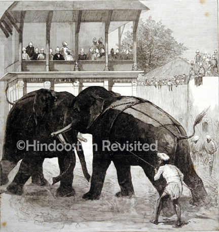 /data/Original Prints/Sports and Passtimes/ELEPHANT-FIGHTING AT BARODA BEFORE THE PRINCE OF WALES.jpg